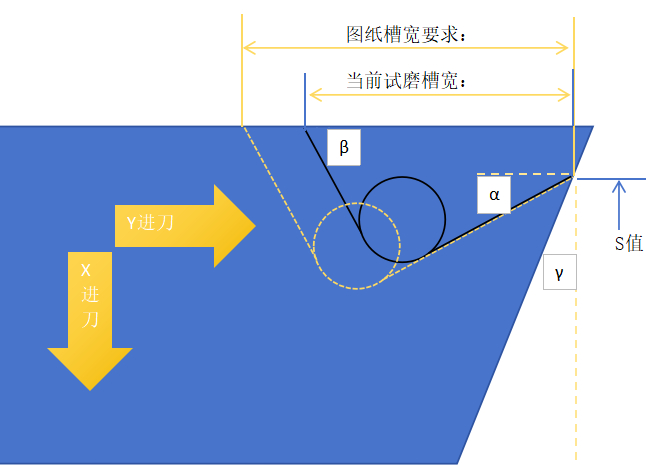 调试S值合格后仅需要调整槽宽时YZ移动量计算